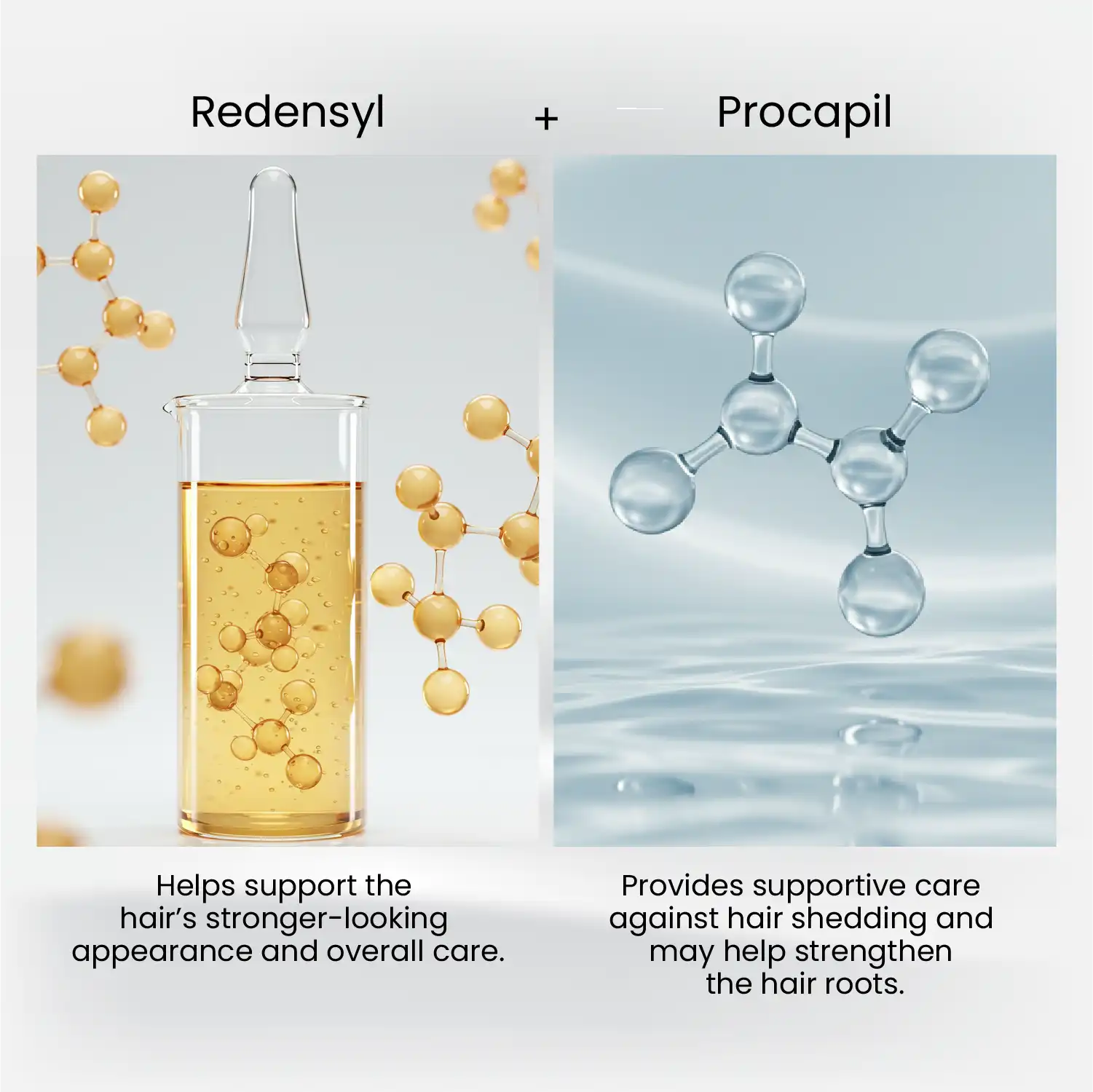 Procapil is an active ingredient included in hair care formulations to help support the structural components of the hair follicle. It is designed to help protect hair follicles and support the natural hair cycle. Procapil has been studied for its potential to support the expression of genes involved in tissue repair mechanisms. Clinical studies have reported that the use of Procapil may be associated with an increase in the number of hairs in the anagen (growth) phase. In laboratory studies, Procapil has been compared with other ingredients such as minoxidil, and results suggest that it may help support hair follicle vitality. Individual results may vary.