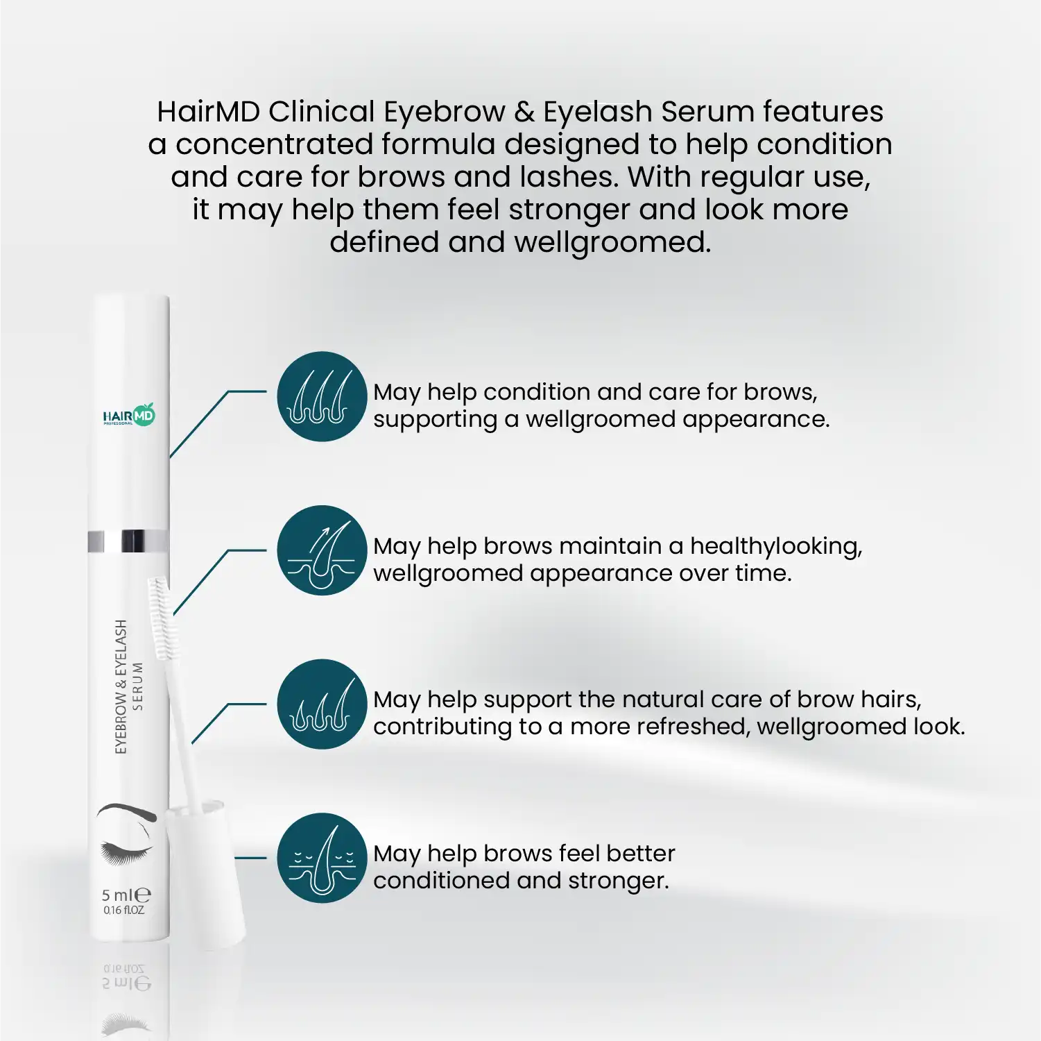 With its concentrated content, HairMD Clinical Eyebrow and Eyelash Serum is formulated to help nourish eyebrows and eyelashes and support their healthy appearance.